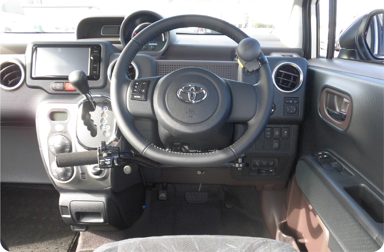 手動運転装置は、両下肢が不自由な方が両上肢で運転することが出来る運転補助装置です。